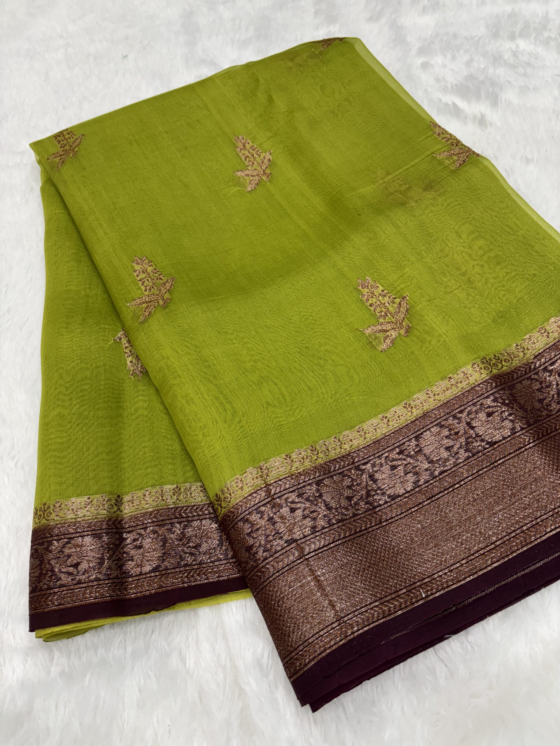 Noori Handicrafts brings you an exclusive Contrast Pure Banarasi Organza Saree range that is sure to make you fall in love with.
