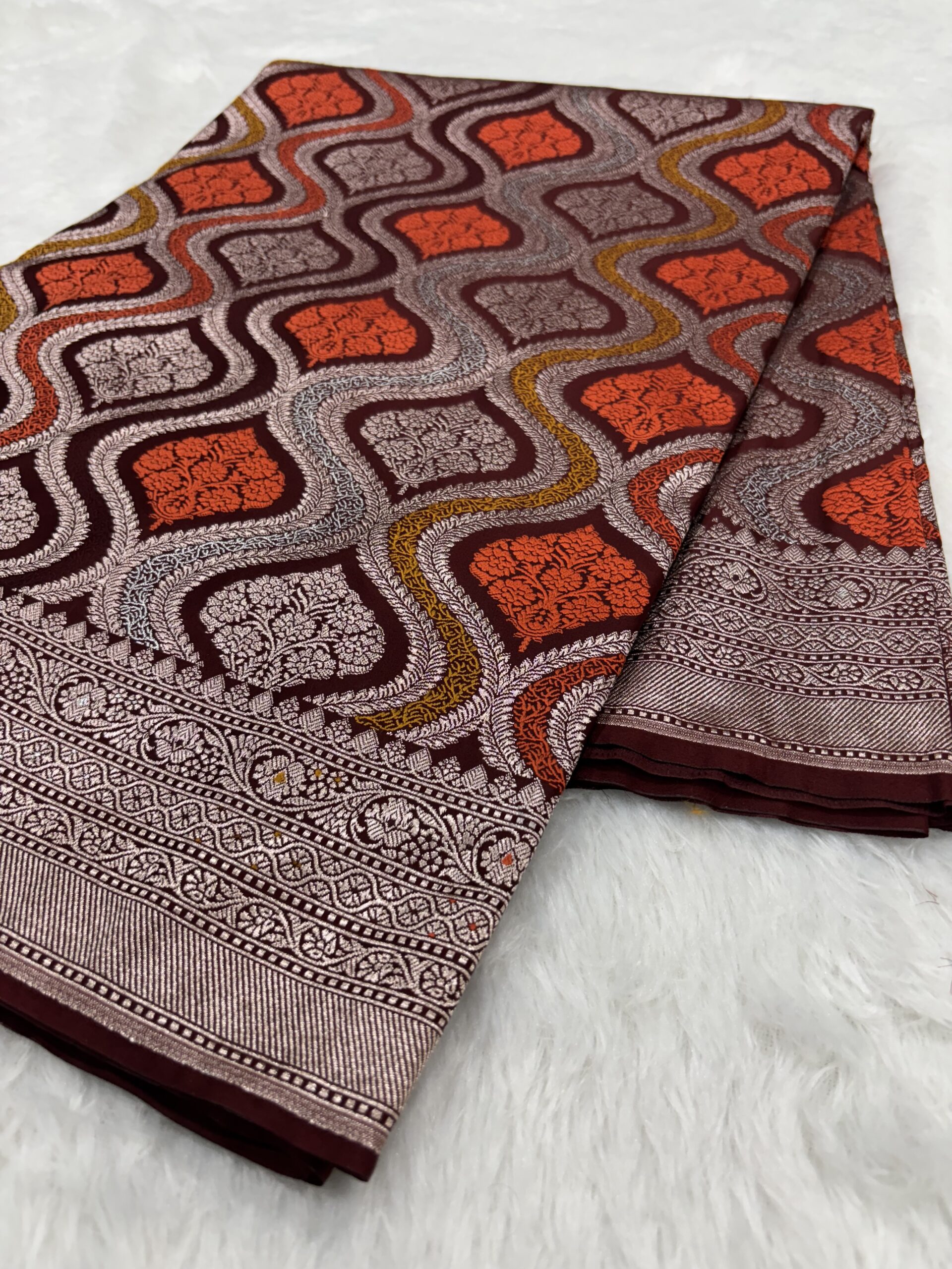Comfort: Easy to drape, and a must-have Garnet Banarasi Saree.