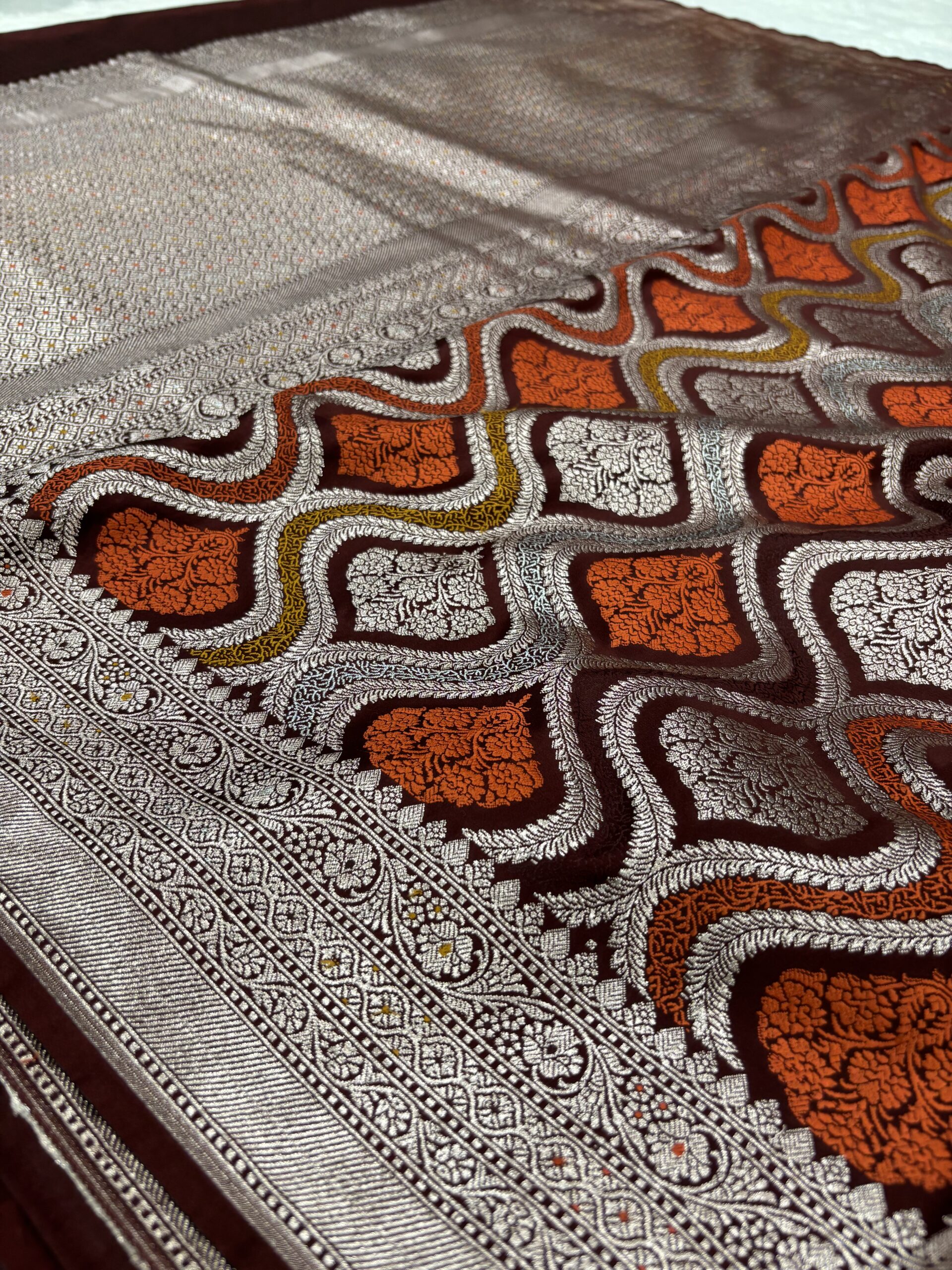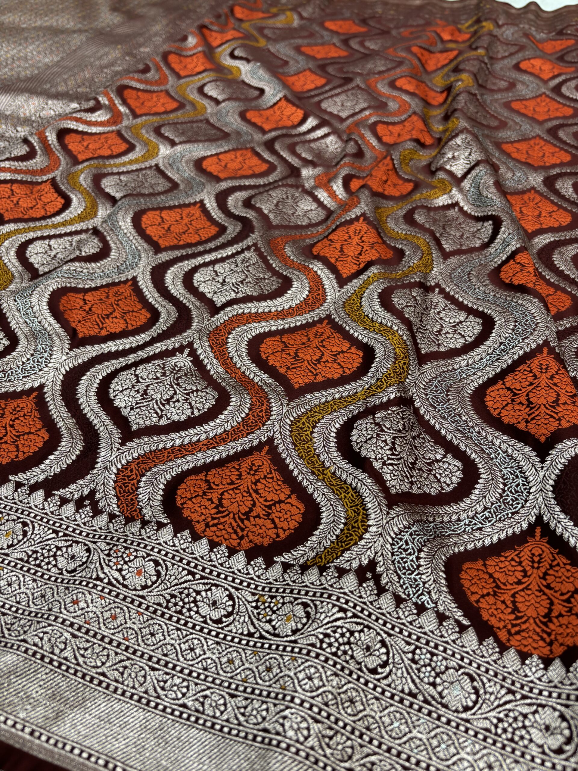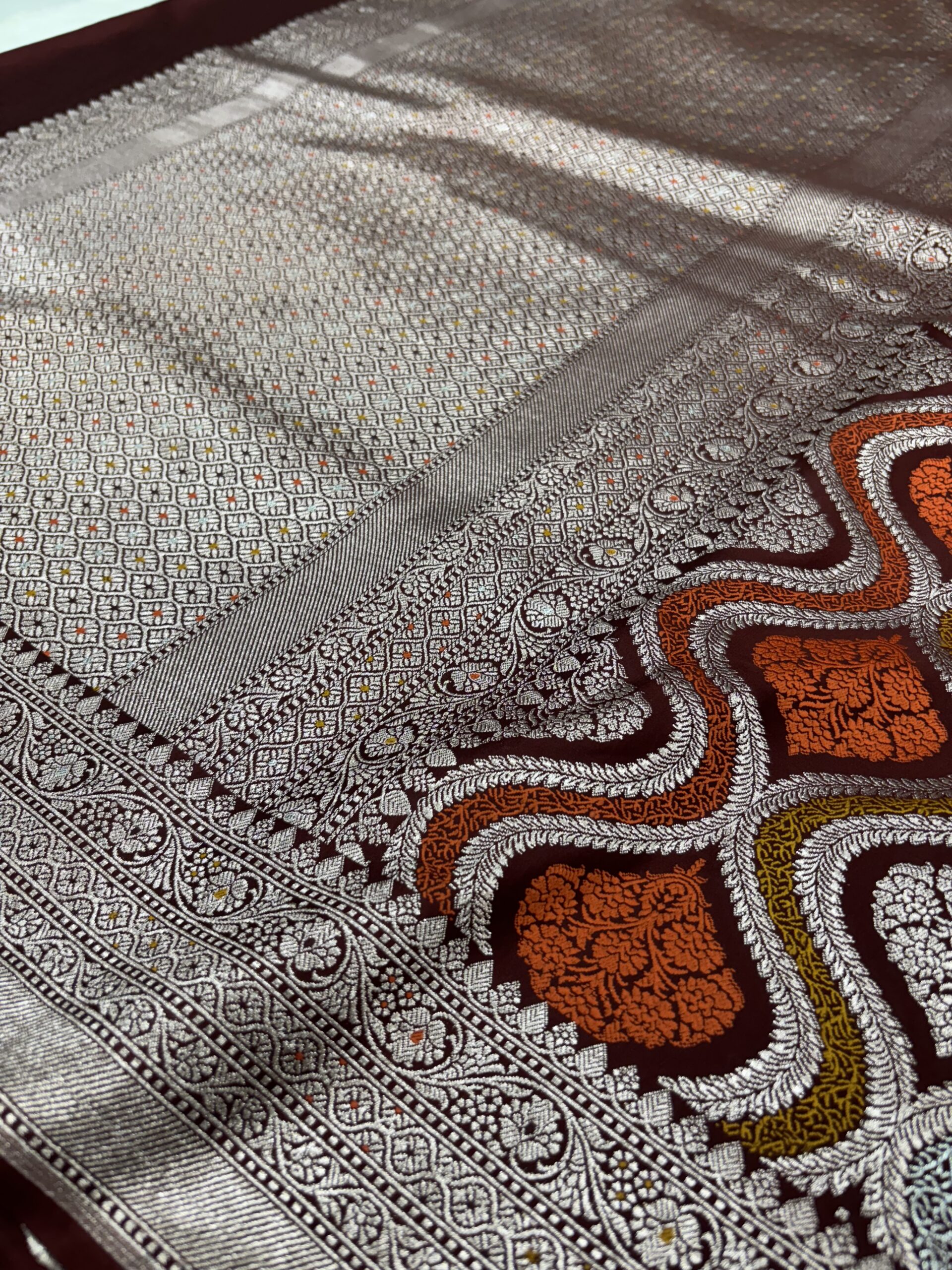 This Garnetย Katan Silk Banarasi Saree is a beautiful choice for royal and traditional ethnic wear. As a direct Banarasi Saree Manufacturer in Varanasi, Noori Handicrafts provides authentic quality in every thread.
