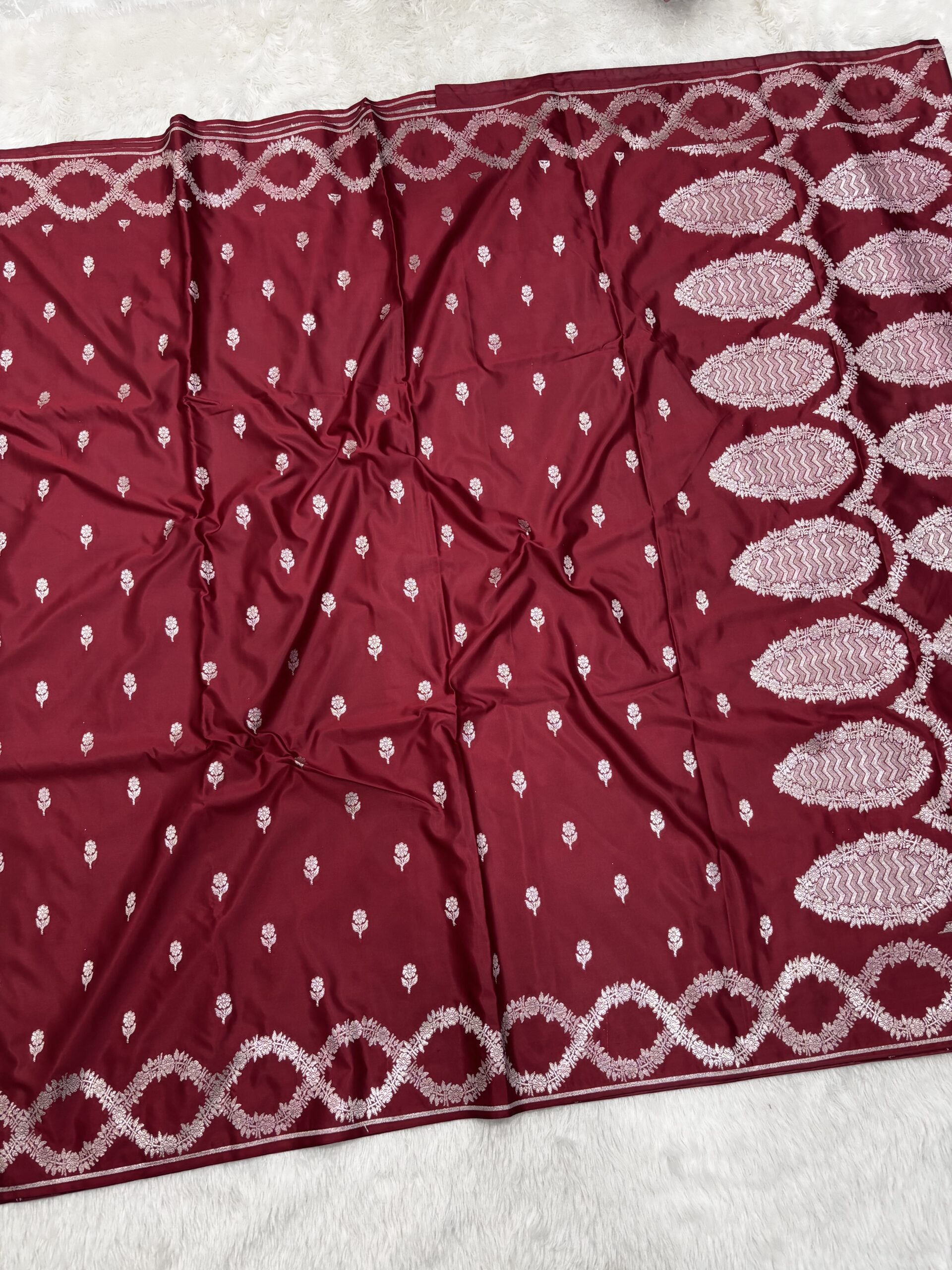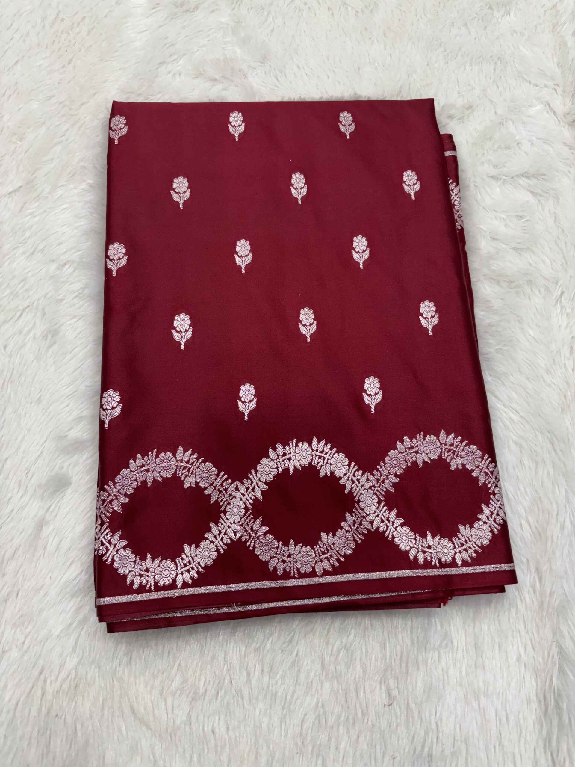 Why Choose Our Collection? Our sarees are sourced directly from the weavers of Banaras, ensuring the highest quality and authentic work. This Banarasi Maroon Mashru Silk Saree is specially designed for those who appreciate traditional art and want a premium look that lasts for years. Each thread is woven with care to give you a royal feel.