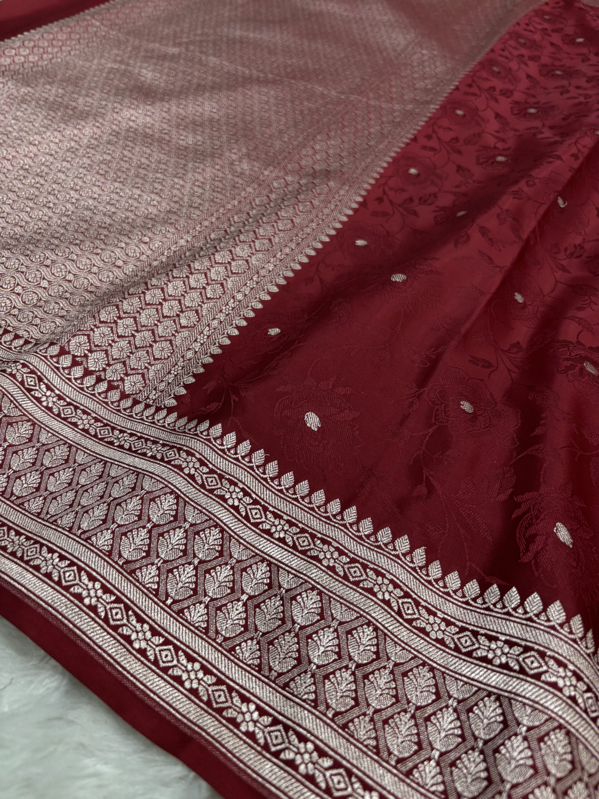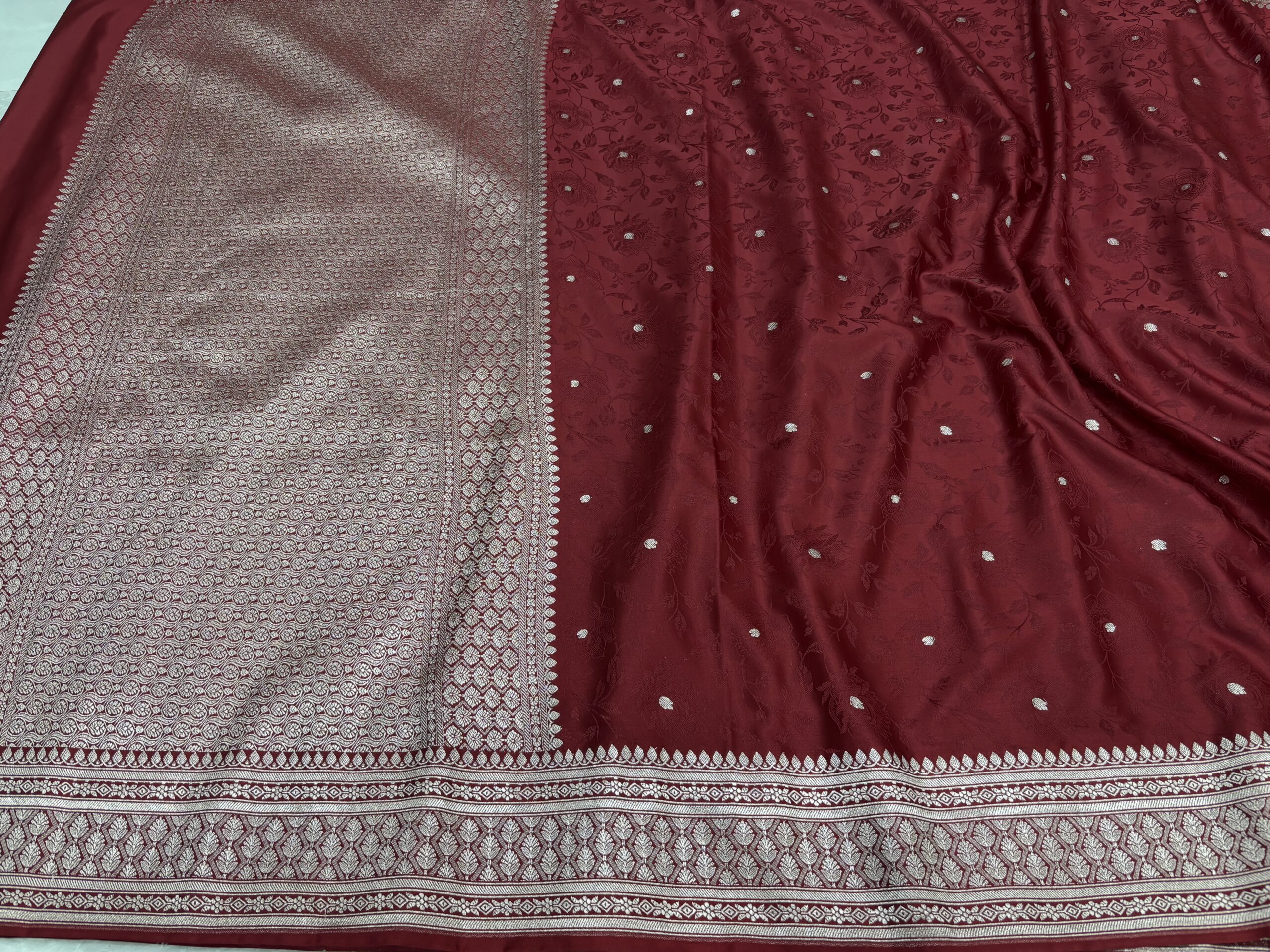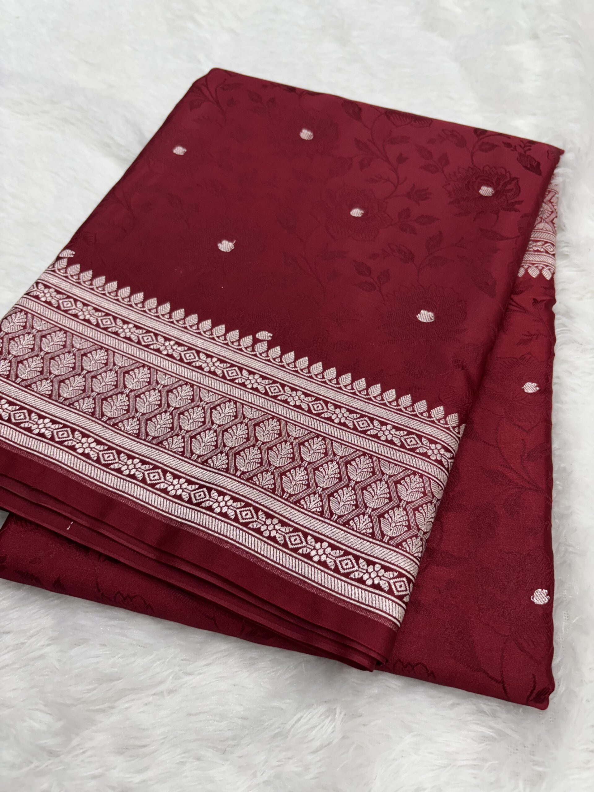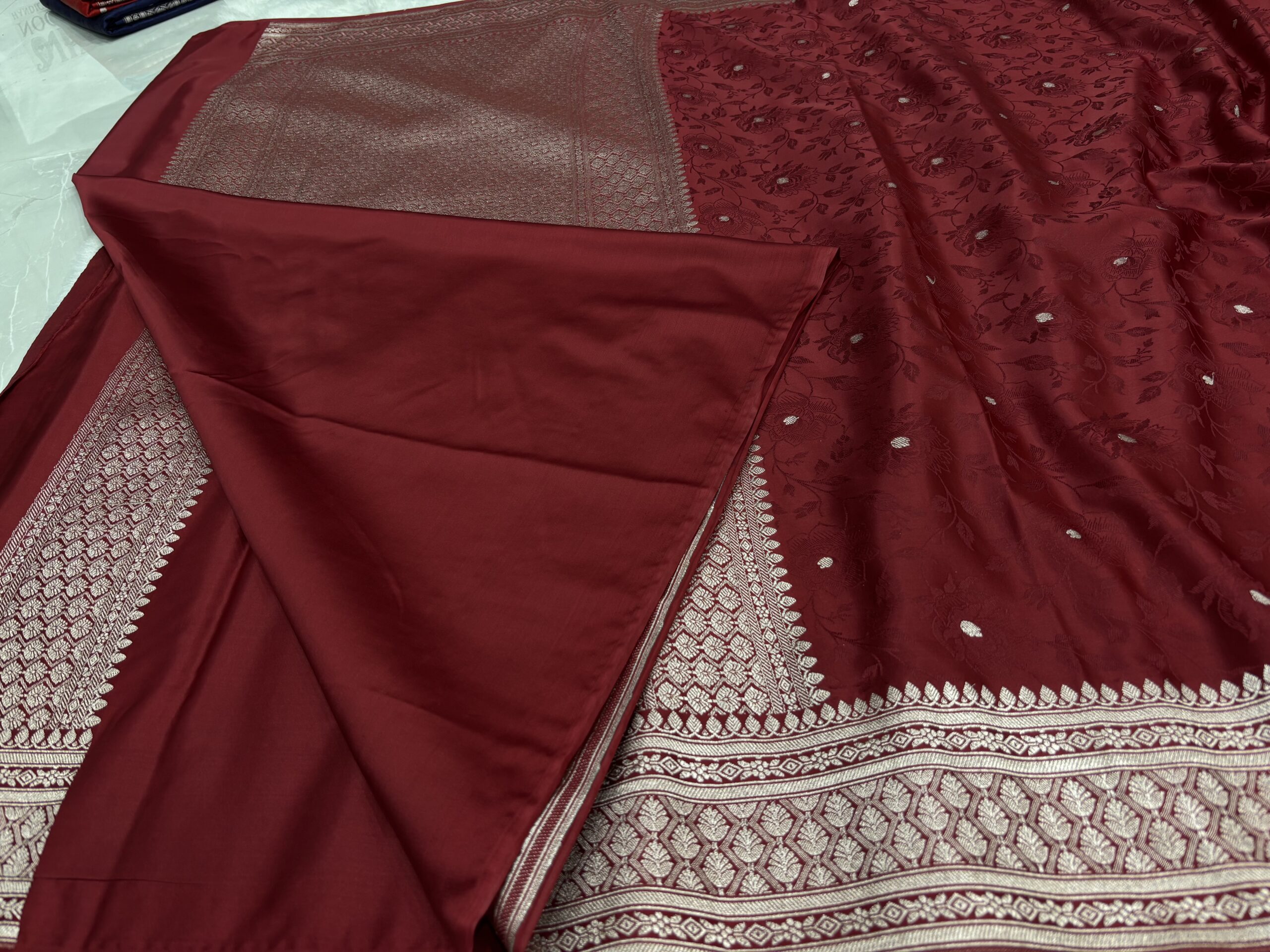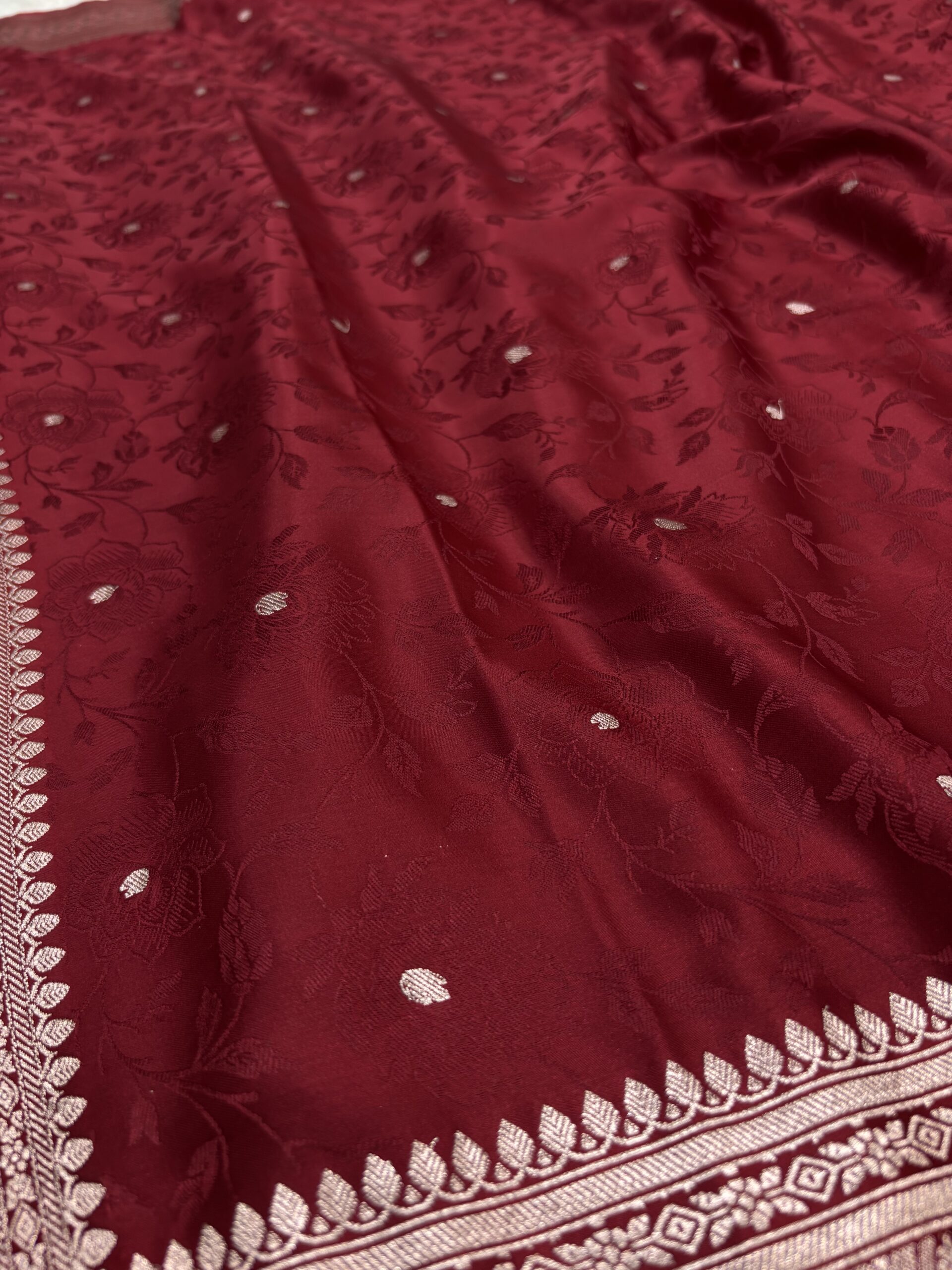 Maroon Mashru Silk Tanchoi Saree: A Banarasi Classic