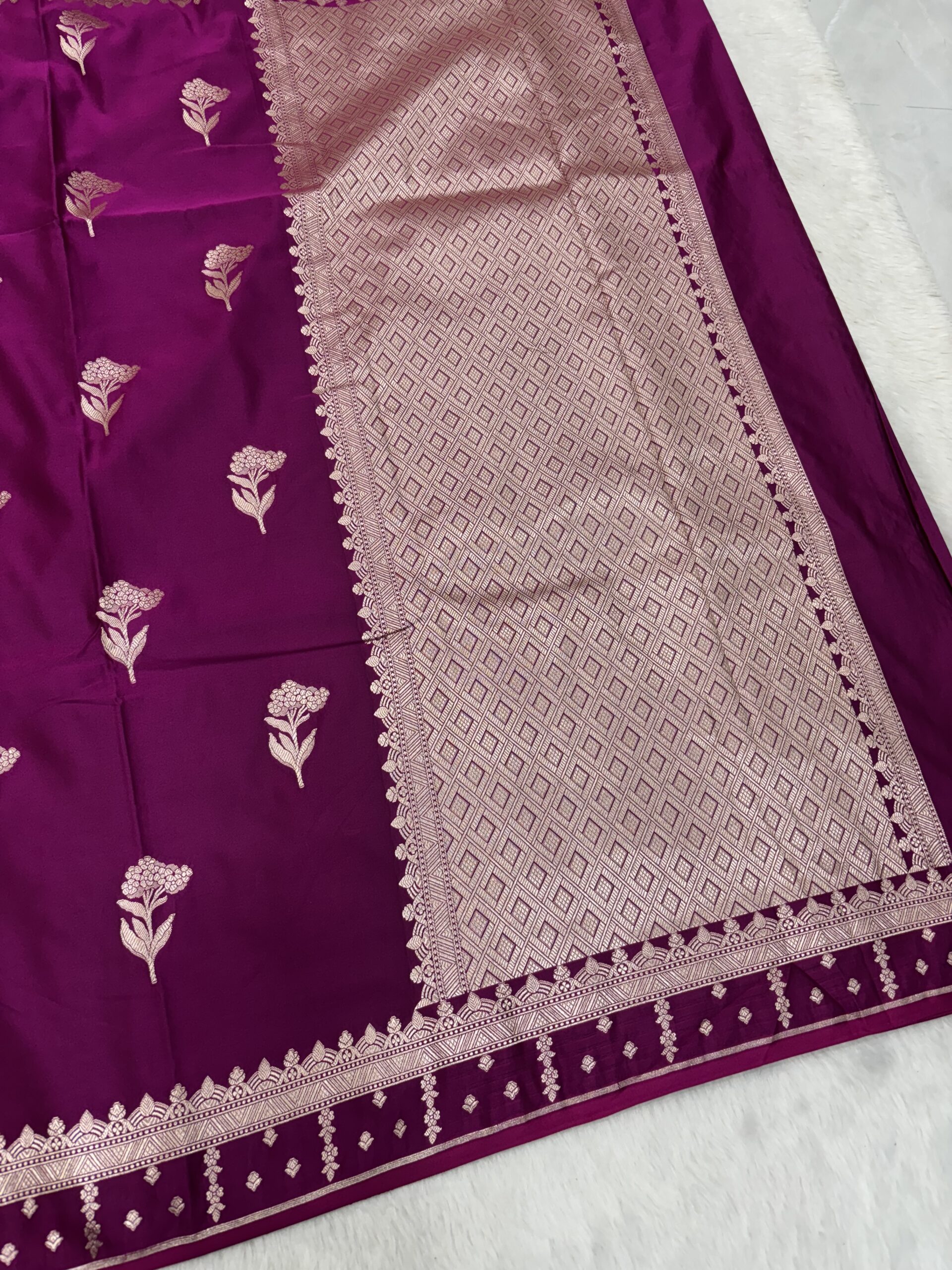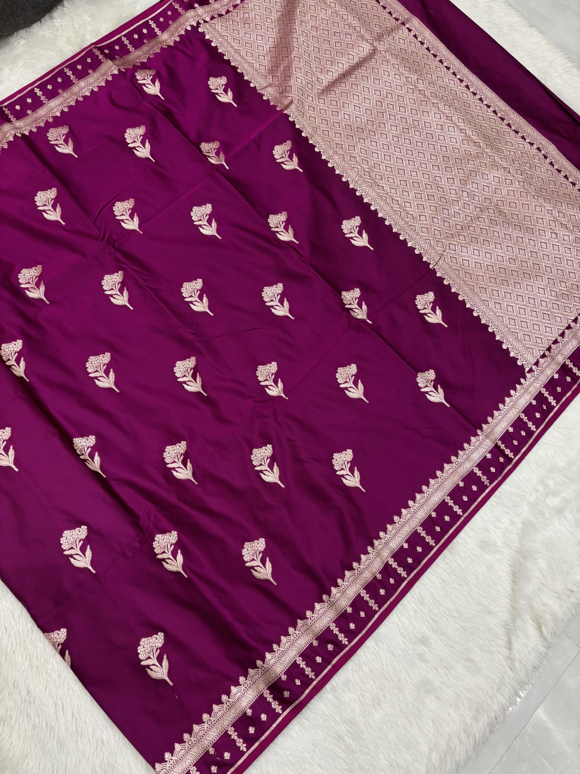 The Noori Handicrafts Guarantee Every Premium Purple Banarasi Mashru Satin Saree we sell is a symbol of our commitment to authentic Indian handloom. We work directly with weavers to ensure that the quality of the zari and the softness of the satin meet international boutique standards. Our mission is to provide you with a piece of heritage that you can cherish for a lifetime. When you choose a Premium Purple Banarasi Mashru Satin Saree from us, you are supporting the sustainable growth of the artisan community in Varanasi.