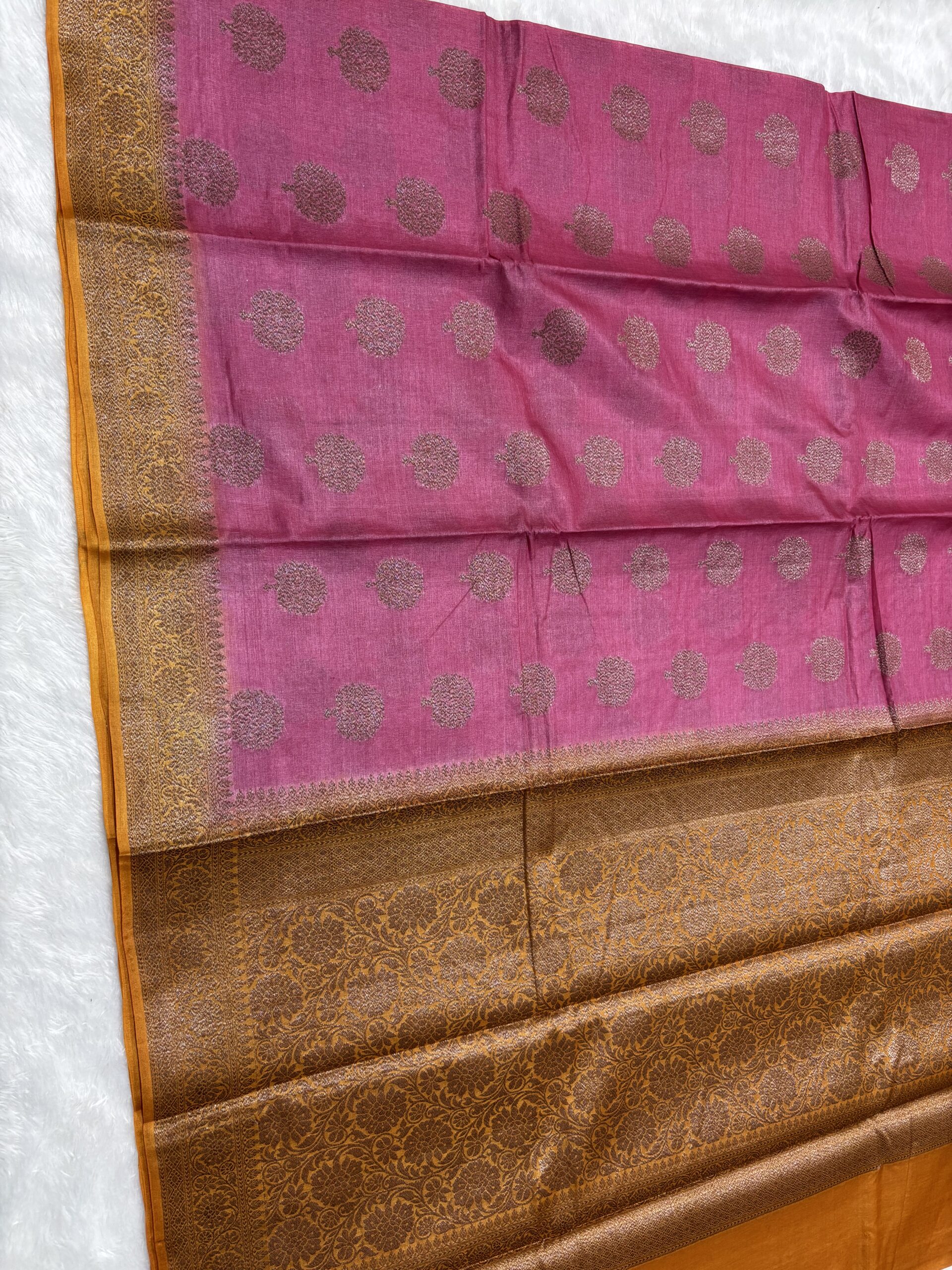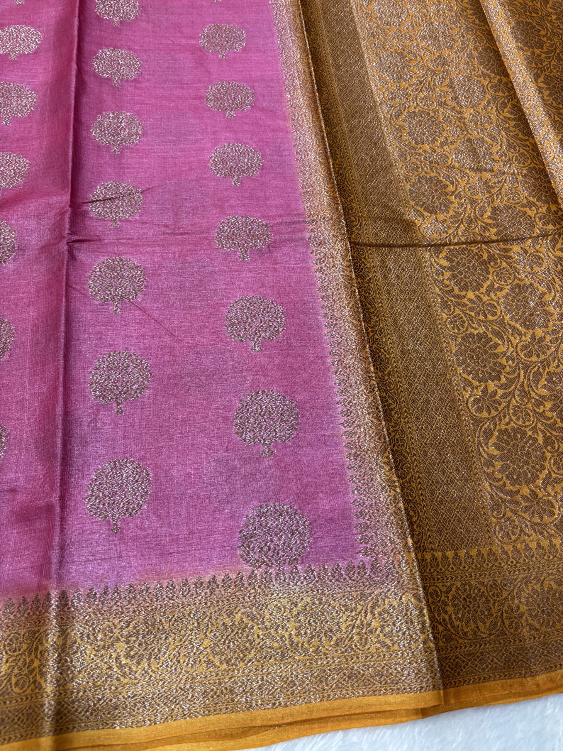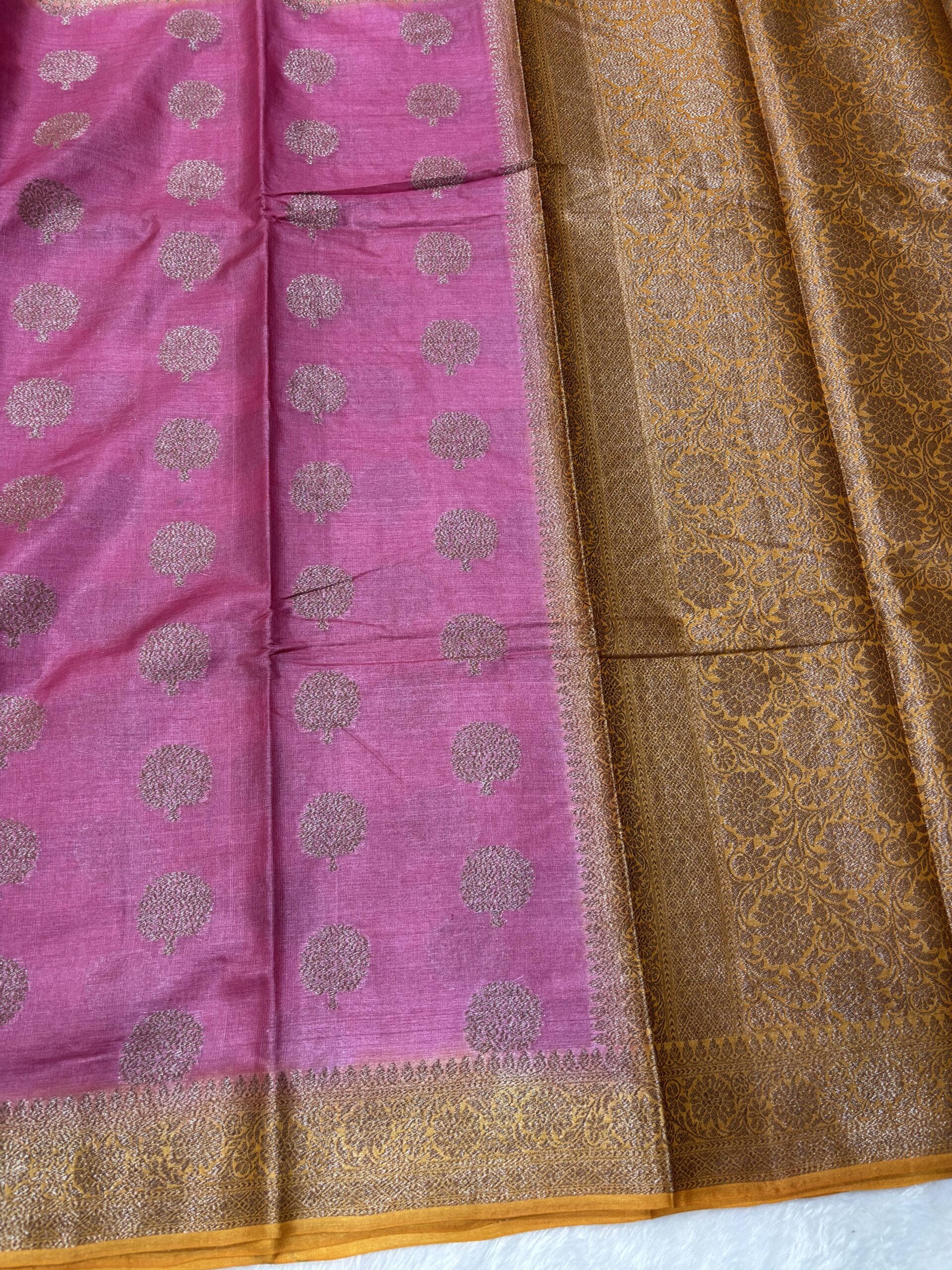 Pure Tussar Pink & Mustard Contrast Banarasi Saree