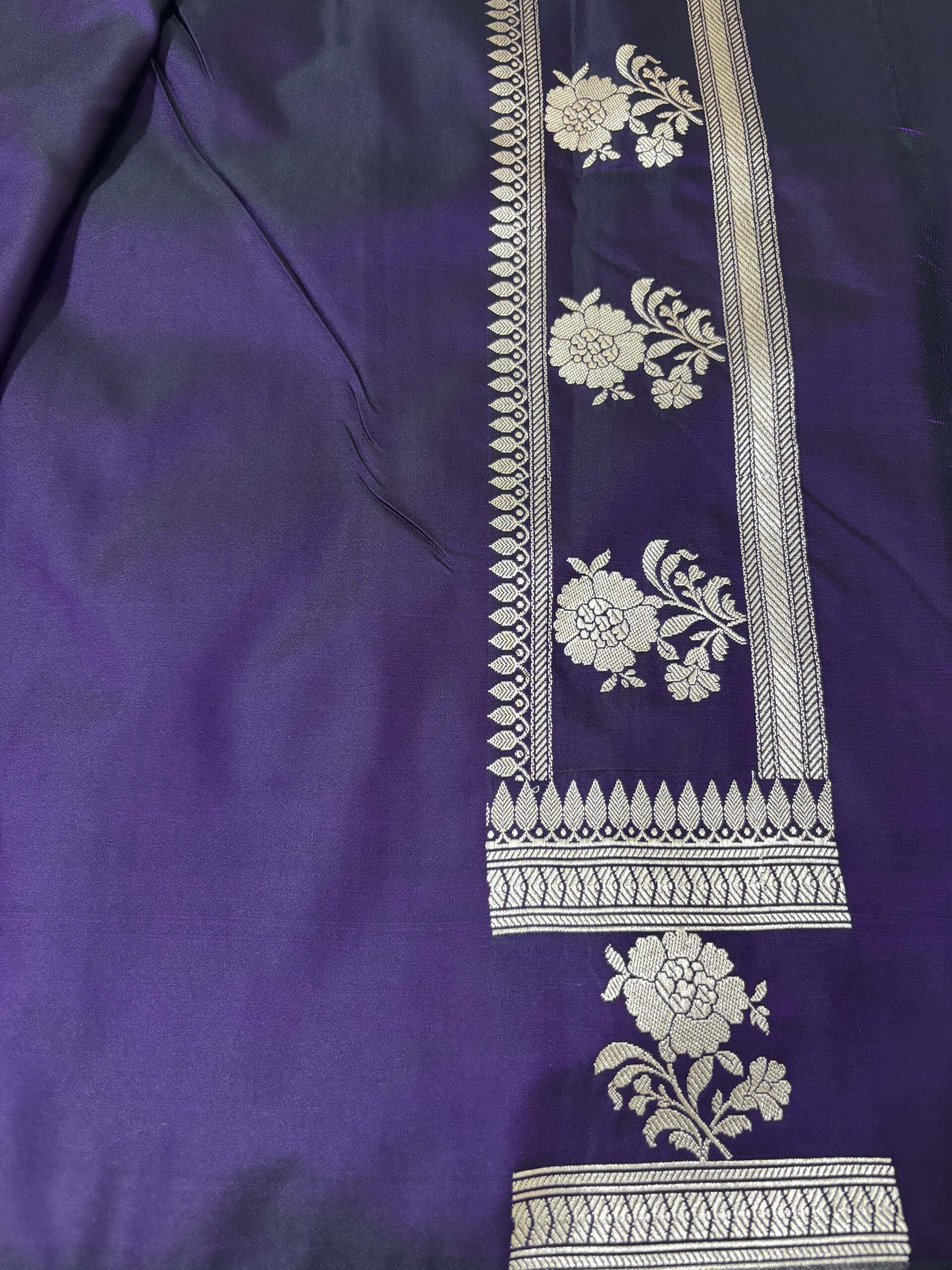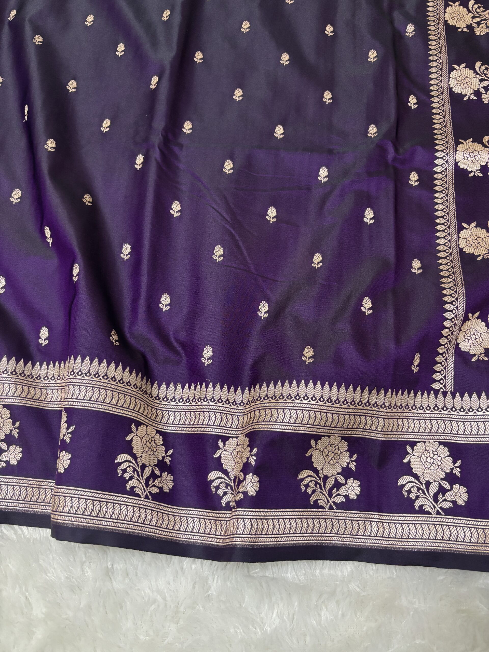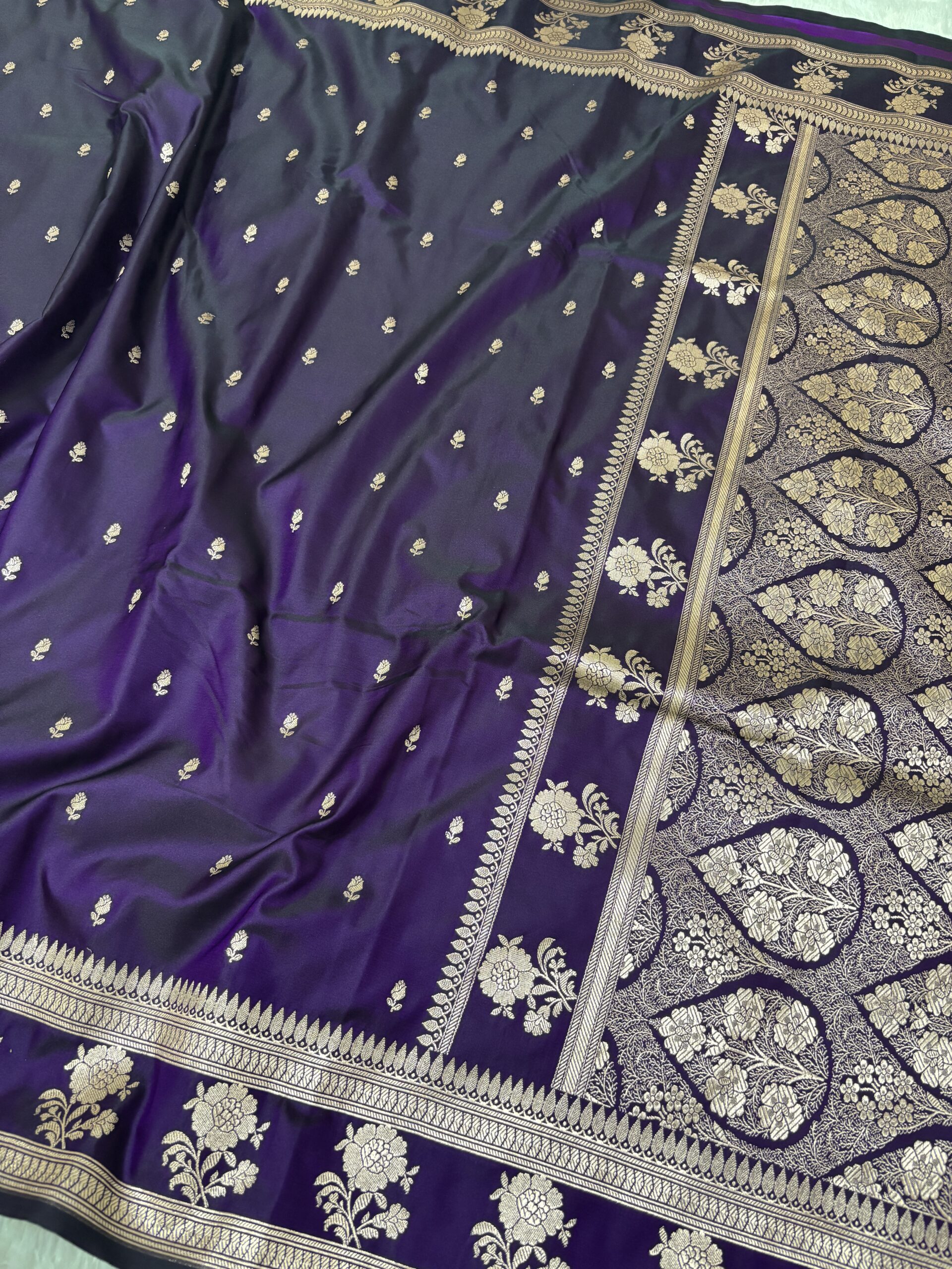 The Majestic Appeal of the Purple Banarasi Mashru Satin Saree