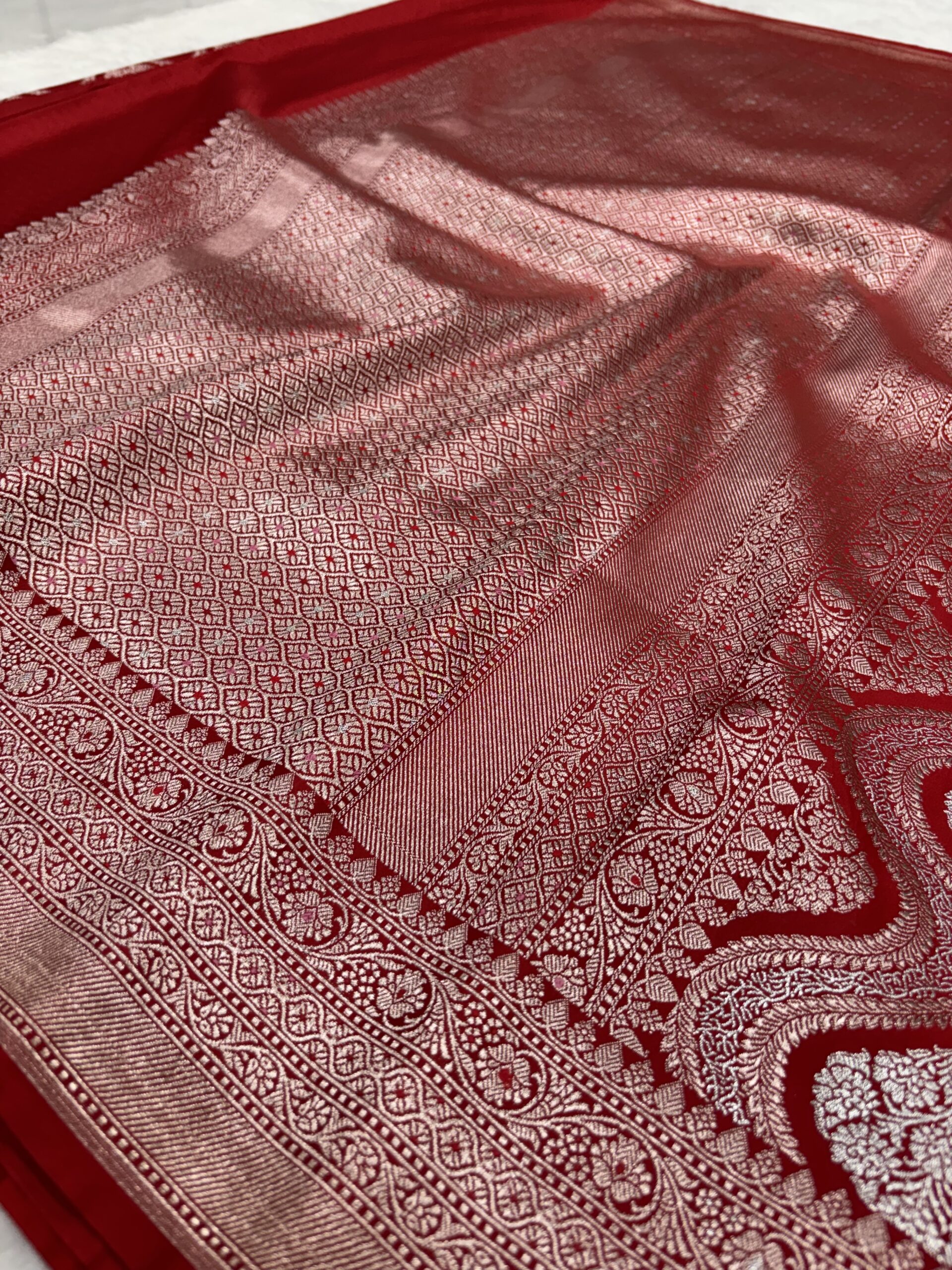 Red Katan Silk Banarasi Saree | Meenakari Work